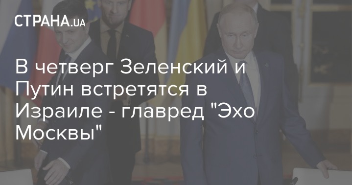 Об этом сообщил главный редактор издания "Эхо Москвы" Алексей Венедиктов в своем телеграм-канале. "В Израиле завтра состоится встреча президентов России и Украины. А где же еще им встречаться", - написал Алексей Венедиктов.