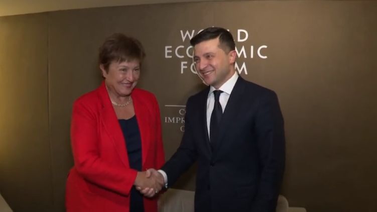 В среду, 22 января, украинский президент Владимир Зеленский встретился с директором-распорядителем МВФ Кристалиной Георгиевой на полях Всемирного экономического форума в Давосе.