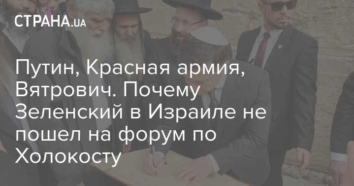 Второе - не допустить разгона зрады в Украине. По поводу того, что он присутствует на мероприятии, на котором выступает Путин и прославляют Красную армию. Поэтому Зеленский на Форум не пошел, уступив место участникам Холокоста.