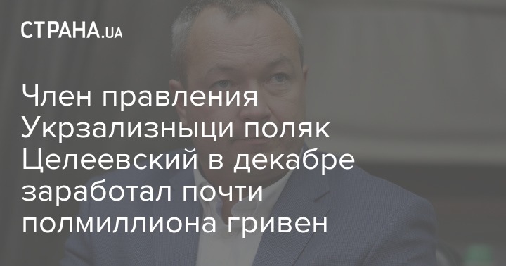 Член правления Укрзализныци поляк Целеевский в декабре заработал почти полмиллиона гривен