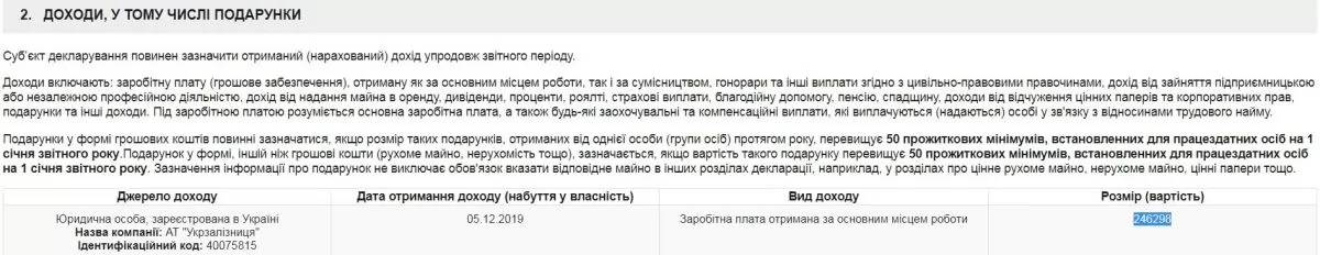 Исходя из предоставленных в НАПК Целеевским изменений в его декларацию, 5 декабря 2019 г. им по основному месту роботы (АТ "Укрзализныця" - Ред.) было получено в виде зарплаты 246,298 тыс грн. А уже 20 декабря минувшего года к этой сумме добавились еще 247,329 тыс грн.