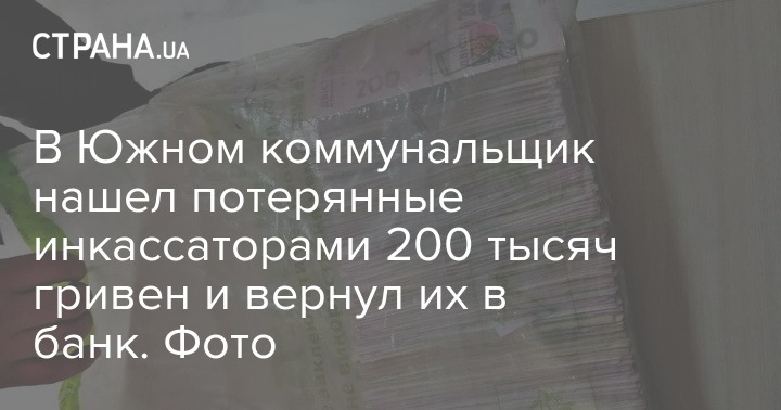 В Южном коммунальщик нашел потерянные инкассаторами 200 тысяч гривен и вернул их в банк. Фото