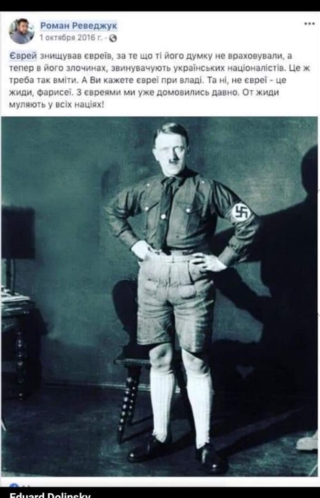 Ранее Реведжук активно поддерживал Порошенко, объявил об учреждении "политического правозащитного движения 25%" (это цифра, которую получил Порошенко во втором туре), а также публиковал и другие провокационные посты. Например, вот этот:
