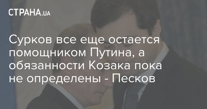Сурков все еще остается помощником Путина, а обязанности Козака пока не определены - Песков