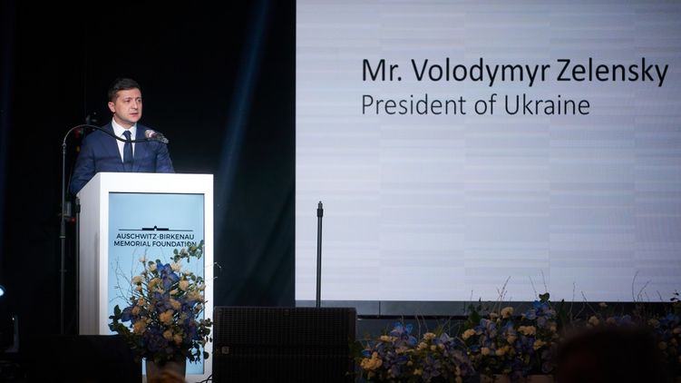Быть тут в международный день памяти Холокоста для меня очень важно. Трагедия Холокоста навсегда оставила раны в сердцах украинцев. Каждого украинцы. Мы никогда не забудем, что среди шести миллионов жертв каждый четвертый был из Украины. Мы никогда не забудем ужасные преступления, которые случились в Бабьем яру, когда нацисты убили более 150 тысяч невинных.", - заявил Зеленский.