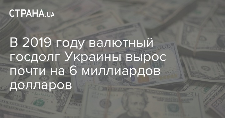 На 7,71% или 5,95 миллиардов долларов за минувший год вырос совокупный государственный и гарантированный государством долг Украины в иностранной валюте. На конец 2019 года он составил 84,4 млрд долларов. Вместе с тем в национальной валюте долг уменьшился на 170,2 млрд грн (7,84%), до уровня 1 998,3 млрд грн. Разница между этими суммами обусловлена укреплением гривны к доллару за 2019 год на 14,5%.
