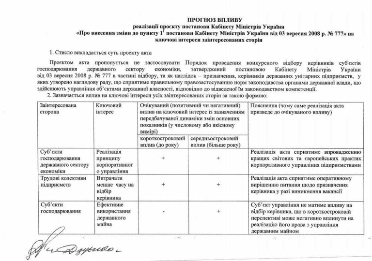 Чиновник представил соответствующие изменения в постановление Кабмина от 3 сентября 2008 №777 "О проведении конкурсного отбора руководителей субъектов хозяйствования государственного сектора экономики".