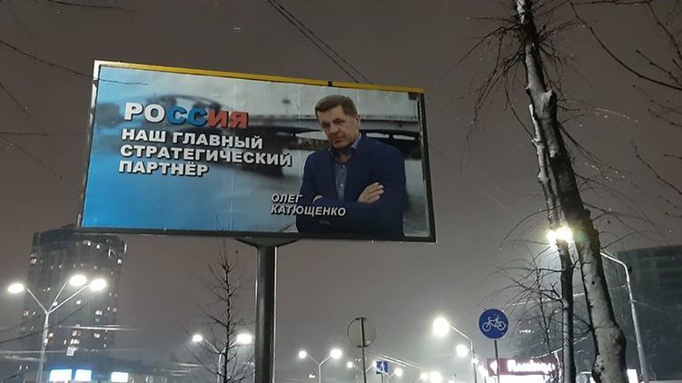 Киевские стражи порядка задержали троих человек за расклеивание билбордов с надписью "Россия - наш главный стратегический партнер" с подписью предпринимателя Олега Катющенко, который работает на строительном рынке столицы.
