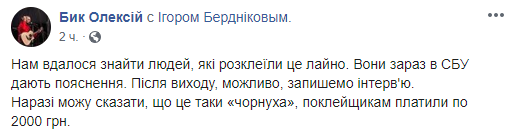 Полицейские задержали расклейщиков "чернухи" той же ночью, когда они принялись выполнять заказ. Им обещали заплатить по 2 тысячи гривен за эту работу.