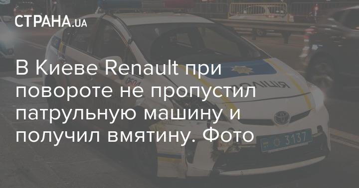 В Голосеевском районе Киева столкнулись автомобиль патрульной полиции Toyota Prius и Renault Kangoo. Авария случилась 30 января около 20:30. Обошлось без пострадавших, но оба автомобиля оказались повреждены.