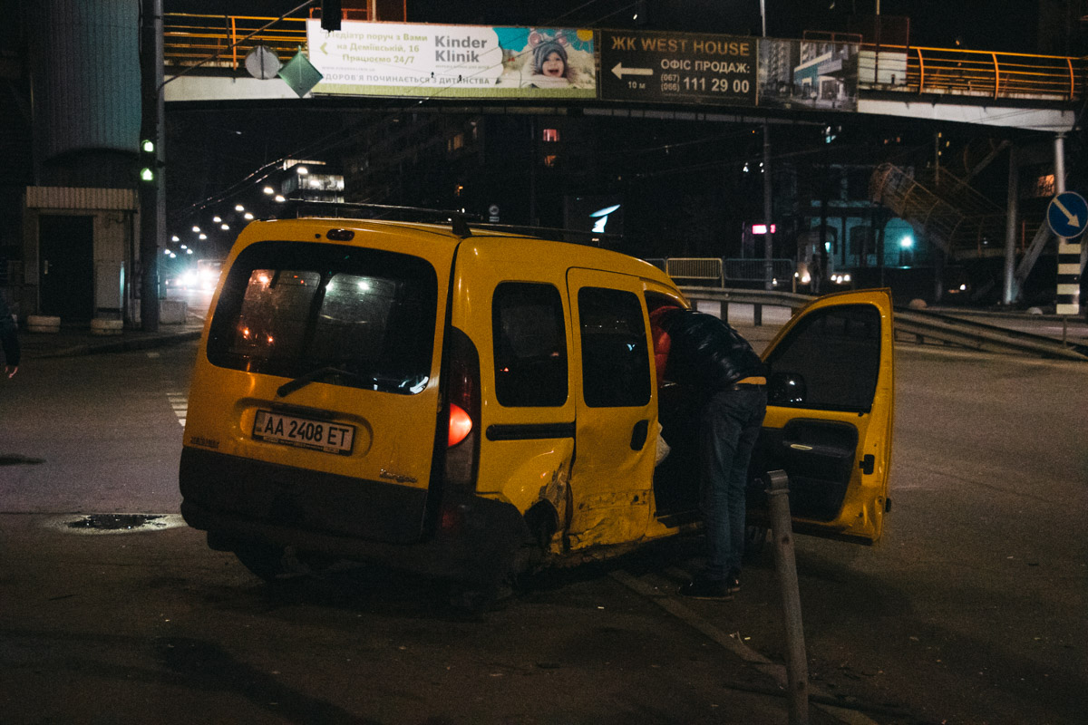 Как рассказали патрульные, они ехали по проспекту Лобановского в сторону Демеевской площади. В противоположном направлении ехал Renault. На перекрестке Kangoo начал поворачивать налево, на улицу Демеевскую. В этот момент и произошло столкновение.