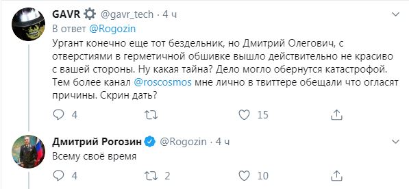 Глава пресс-службы космической госкорпорации Владимир Устименко в этой же ветке обсуждения заявил, что результаты будут представлены после расследования.