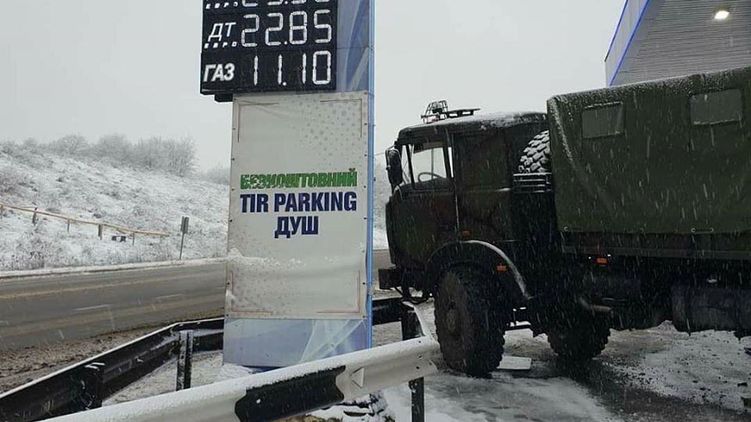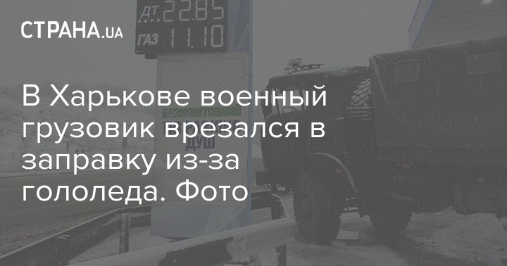 В Харькове военный грузовик врезался в заправку из-за гололеда. Фото