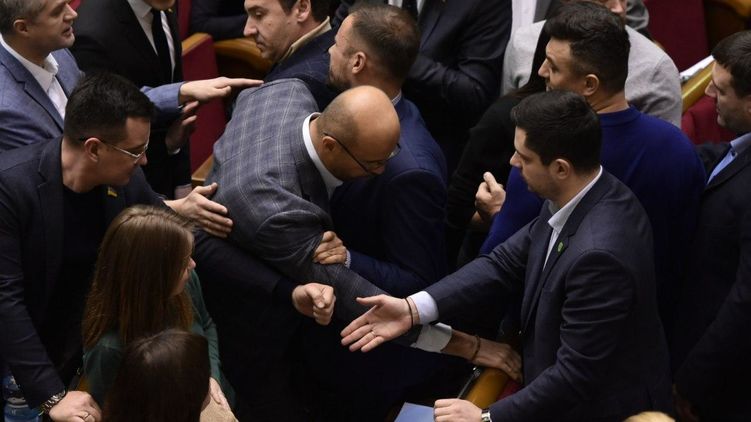Потасовка во время сегодняшнего заседания Рады . Фото: Страна. ua
