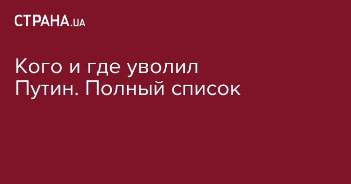 Президент России Владимир Путин провел кадровые перестановки. Полный список  уволенных и назначенных собрала "Страна".
