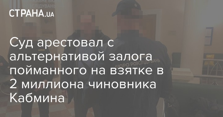 Задержанному на днях при получении взятки начальнику управления секретариата Кабинета министров сообщили о подозрении, а суд принял решение о заключении его под стражу с возможностью внесения залога в сумме 1,55 миллиона гривен. Об этом сообщается на сайте Государственного бюро расследований.