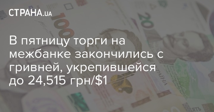 В пятницу торги на межбанке закончились с гривней, укрепившейся до 24,515 грн/$1