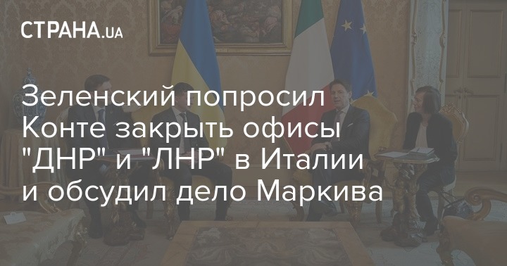 Президент Украины Владимир Зеленский находится с визитом в Итальянскую Республику. В Риме он встретился с премьер-министром Италии Джузеппе Конте и обсудил тему офисов "ЛНР" и "ДНР", а также дело Виталия Маркива.