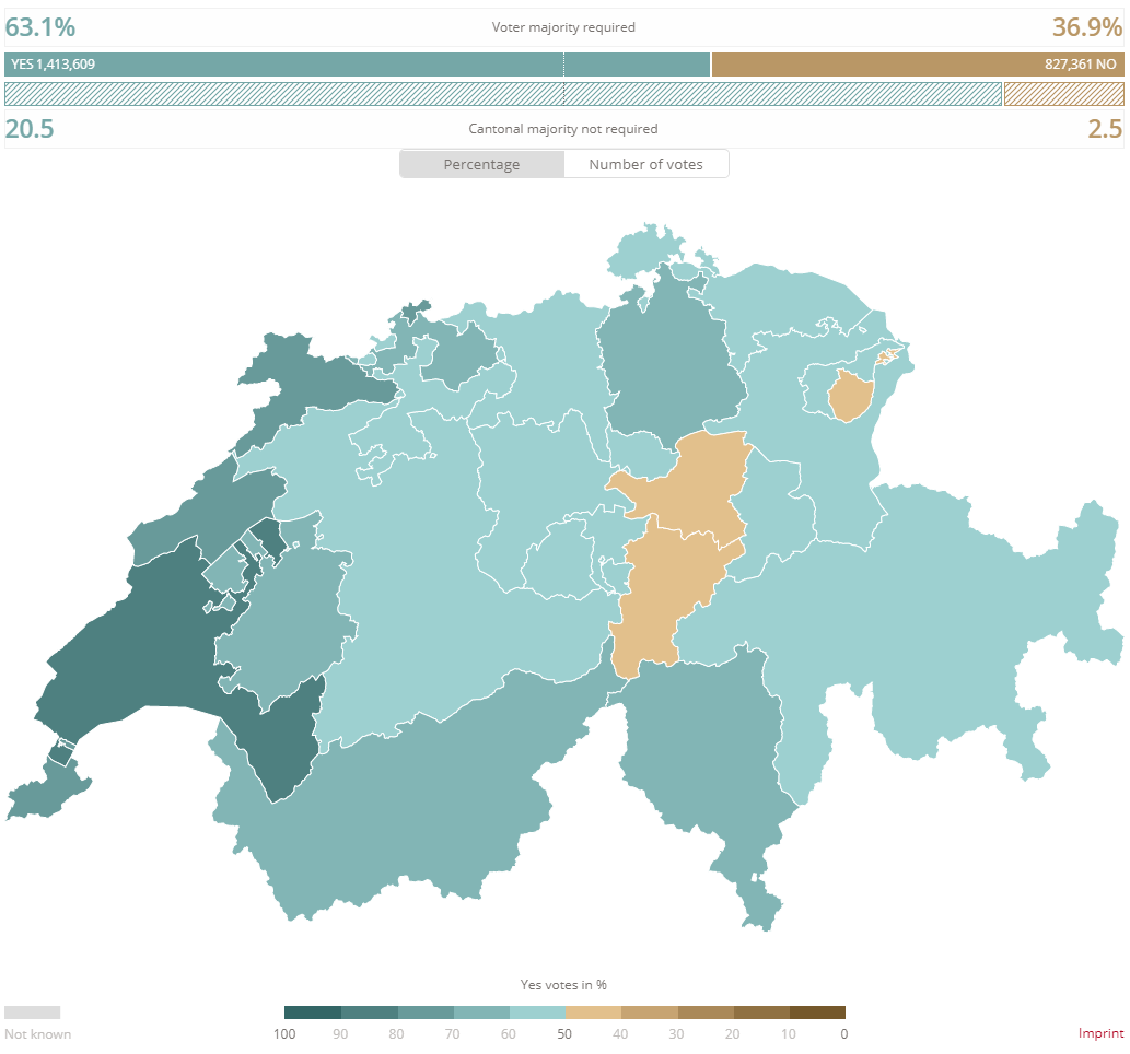 Результаты голосования на референдуме в Швейцарии. Скриншот: swissinfo.ch