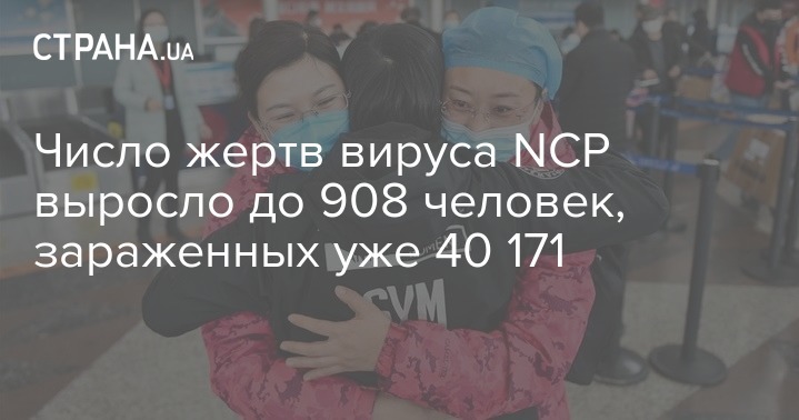 "По данным Национальной комиссии здравоохранения Китая, по состоянию на полночь воскресенья на материковой части Китая было подтверждено 40 171 случай нового коронавируса, умерло 908 человек", - заявили чиновники от медицины, как передает центральное ТВ Китая.