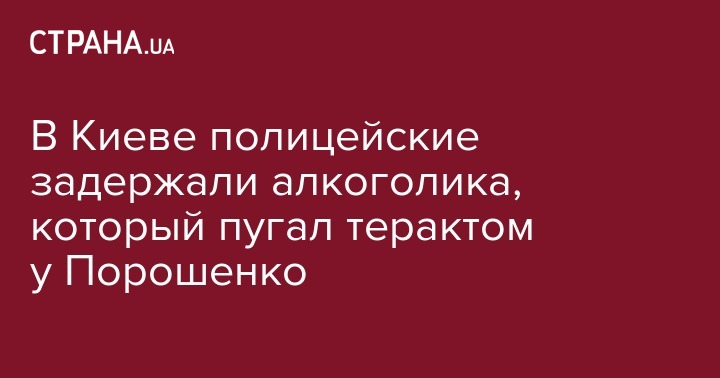 В Киеве полицейские задержали алкоголика, который пугал терактом у Порошенко