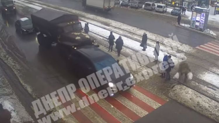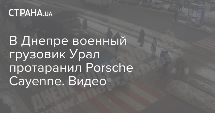 В Днепре военный грузовик "Урал" столкнулся с автомобилем Porsche Cayenne, который остановился перед зеброй, чтобы пропустить пешехода. ДТП произошло на проспекте Ивана Мазепы и попало на видео.