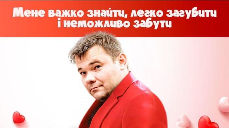 На картинке экс-чиновник, одетый в алый пиджак, утопает в сердечках. Сверху его сопровождает надпись: "Меня трудно найти, легко потерять и невозможно забыть".