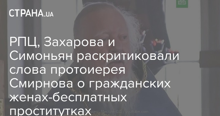 Напомним, что в Русской православной церкви женщин, согласившихся на гражданский брак, подвергли критике. Их сравнили с "бесплатными проститутками", к которым соответствующее отношение мужчин. "Неохота сказать, что "я бесплатная проститутка", поэтому говорят: у меня гражданский брак, - заявил протоиерей Смирнов.
