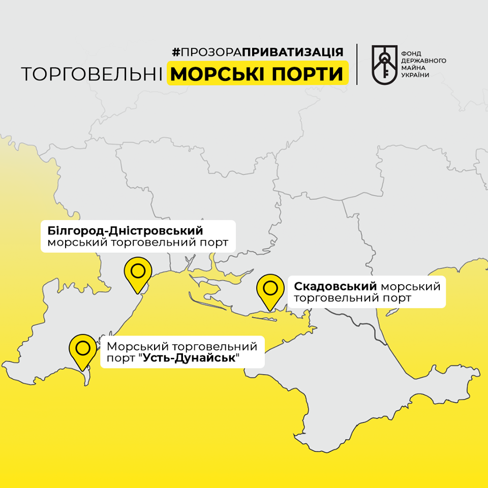 "Решение по 2-м приняли еще в декабре прошлого года, и эти активы фигурируют в полном приватизационном перечне. По порту "Белгород-Днестровский", то готовим совместно с Министерством инфраструктуры документацию и в ближайшее время также будет соответствующее решение", - говорится в сообщении.