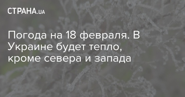 Во вторник, 18 февраля, на большей части Украины ожидается солнечная и сухая погода. Лишь в западных регионах днем и в северных областях возможен местами небольшой дождь. В Карпатах и восточной части страны на дорогах местами гололедица. Ветер юго-западный, 7-12 м / с. Об этом сообщает Укргидрометцентр.