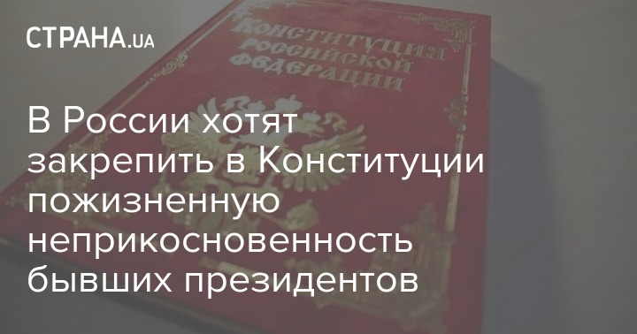 В Конституцию РФ предлагают внести пункт о неприкосновенности экс-президентов. Об этом сообщили в рабочей группе по подготовке предложений по изменению основного документа страны, передает РИА "Новости"