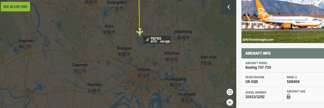 19:15 Борт SkyUp вылетел из Уханя.