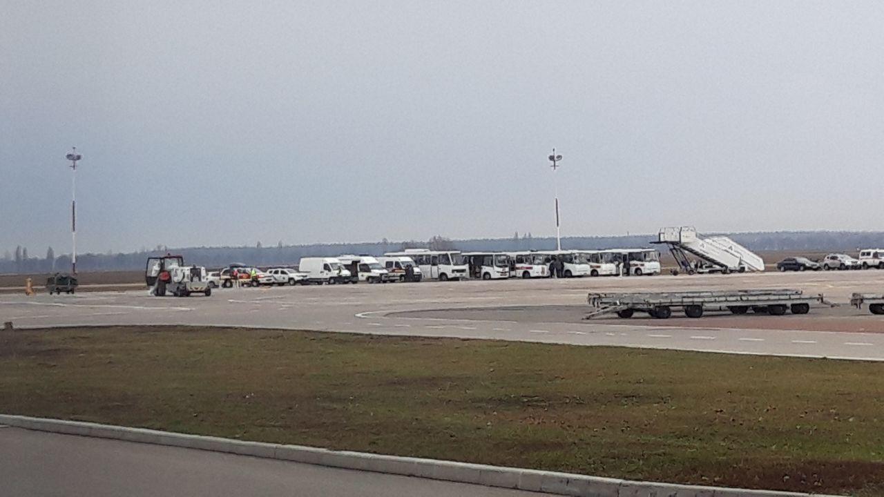 В аэропорту Харькова медики и силовики готовятся встречать самолет, людей из которого, предположительно, отправят в госпиталь под Полтавой. А лайнер тем временем из-за тумана вернулся в Киев.