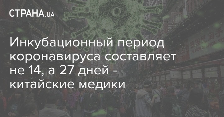 Представители китайской провинции Хубэй заявили, что инкубационный период зараженных коронавирусом COVID-19 может составлять 27 дней, вместо принятых ранее 14. Через именно столько дней у 70-летнего мужчины были обнаружены симптомы болезни.