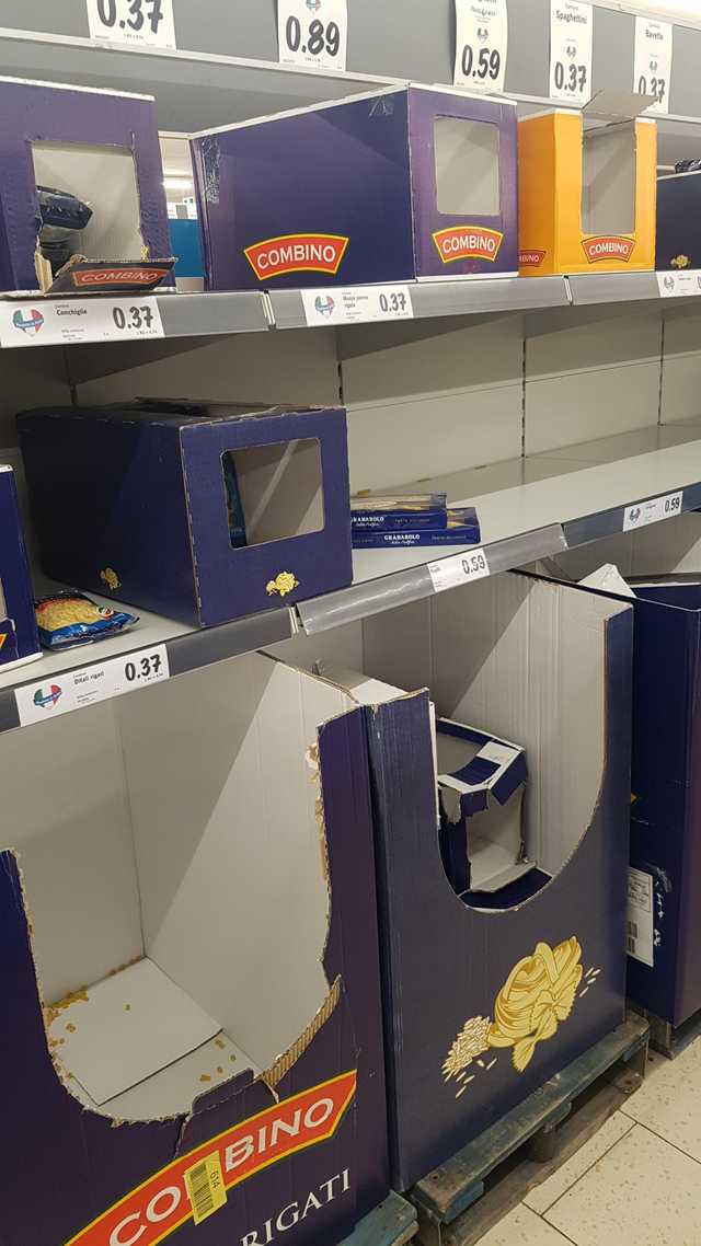 "На выходных во многих магазинах Милана сметали продукты. Люди запасаются на время карантина. Пасту и томатный соус закупили на полгода вперед. Очереди были страшные. Но, говорят, в понедельник будут новые завозы. В гипермаркеты можно зайти только в маске, кто-то шарфами заматывается. Их, кстати, в аптеках раскупили, я нашла в городе Комо под Миланом в строительном магазине  - 3 маски за 4 евро. В Сесто на границе с Австрией закрыли все супермаркеты", - рассказывает живущая в Милане львовянка Оксана Блищик.