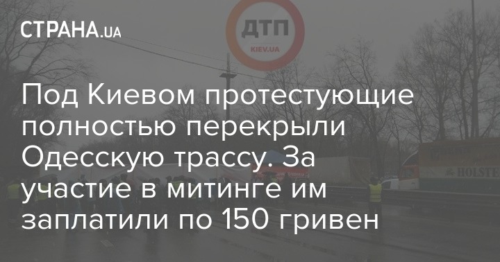 Утром в понедельник, 24 февраля, под Киевом, в районе пгт Чабаны, люди перекрыли Одесскую трассу. В сети появилась информация, что за участие в "акции протеста" митингующие получили по 150 гривен.