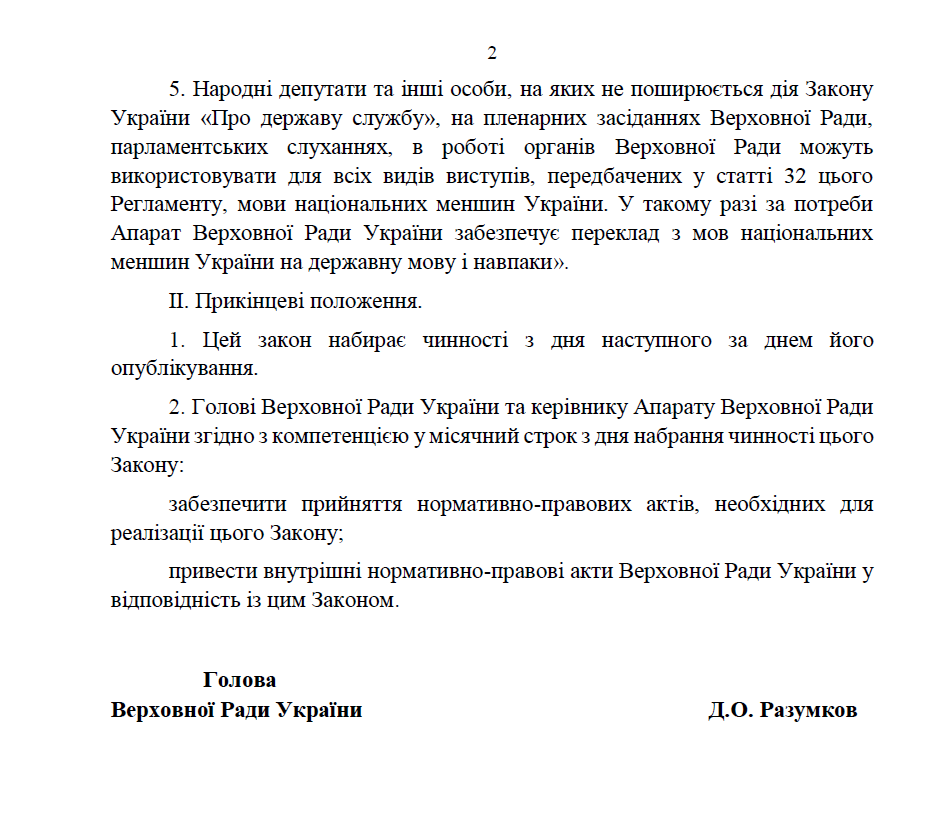 А Аппарату Рады необходимо будет обеспечивать перевод с языков национальных меньшинств на государственный язык и наоборот.