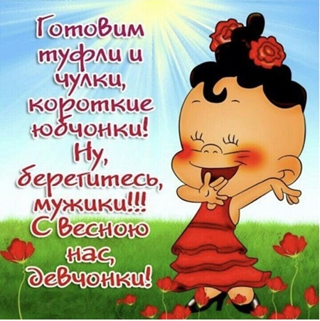 Готовим платья и чулки, короткие юбчонки. Ну, берегитесь, мужики! С весною нас, девчонки!