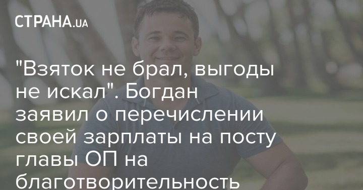 "Взяток не брал, выгоды не искал". Богдан заявил о перечислении своей зарплаты на посту главы ОП на благотворительность