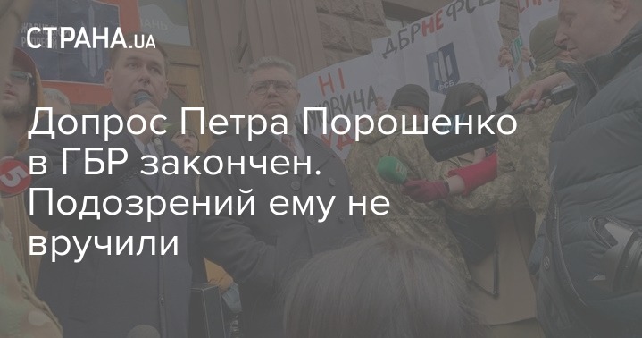 По состоянию на вечер 28 февраля допрос Петра Порошенко в ГБР закончен. Подозрений ему не вручили, заявили адвокаты экс-президента.
