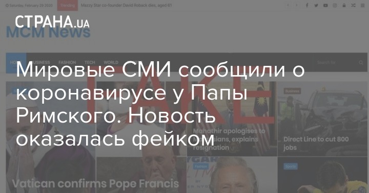 Мировые СМИ сообщили о коронавирусе у Папы Римского. Новость оказалась фейком