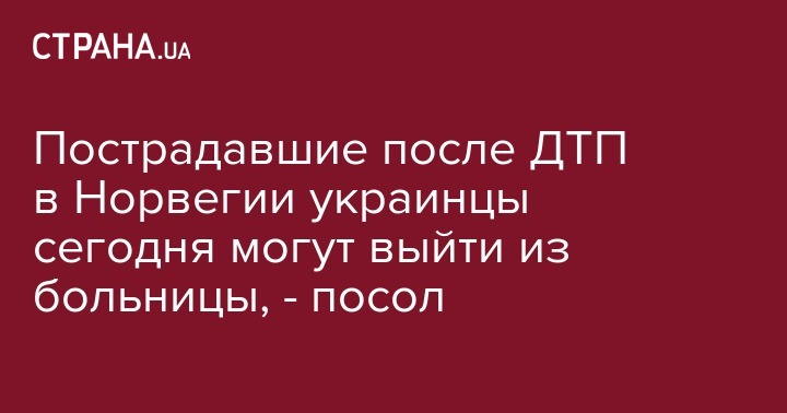 Госпитализированные после ДТП в Норвегии граждане Украины уже получили медицинскую помощь и сегодня смогут покинуть больницу. Об этом сообщил Уполномоченный посол Украины в Норвегии Вячеслав Яцюк, передает телеканал "112 Украина".