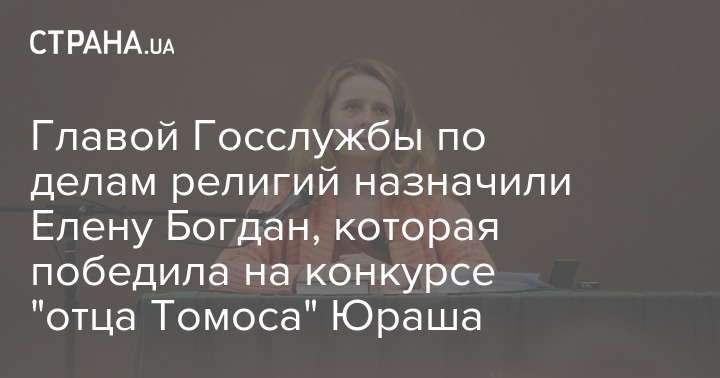 Новым главной Государственной службы Украины по этнополитике и свободе совести правительство назначило доцента Киево-Могилянской академии Елену Богдан, которая победила возглавлявшего Департамент Минкульта по вопросам религий при Петре Порошенко, "отца" Томоса Андрея Юраша. Испытательный срок составит три месяца, после чего она должна проработать в течение пяти лет.