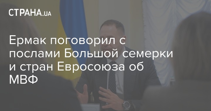 Глава Офиса президента Андрей Ермак во вторник, 3 марта, обсудил с послами стран Большой семерки (G7) и главой Представительства ЕС в Украине сотрудничество Украины с Международным валютным фондом (МВФ).