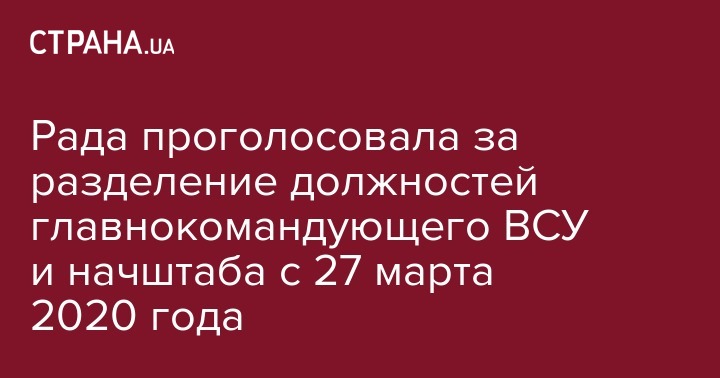 На внеочередном заседании 4 марта Верховная Рада приняла решение о Положении переходных положений закона "О национальной безопасности". Они касаются разделения должностей главнокомандующего Вооруженных сил Украины и начальника Генерального штаба ВСУ и должны вступить в силу 27 марта 2020 года, а не 1 января 2021, как планировалось ранее.