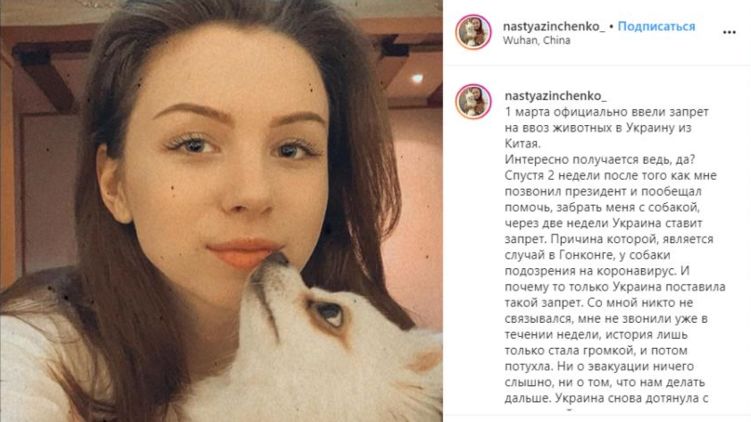 Анастасия Зинченко, которой посольство Украины не разрешило взять с собой собаку во время эвакуации из провинции Ухань, а позже президент Зеленский обещал доставить домой, до сих пор находится в Китае.