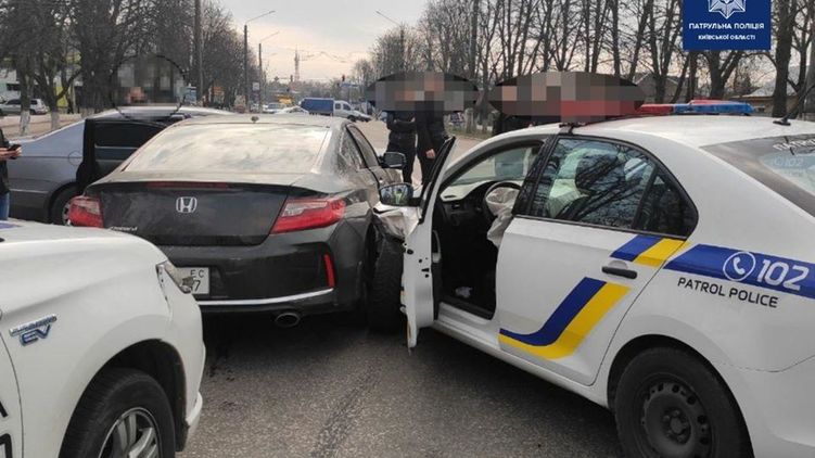 В городе Борисполь Киевской области полиция с погоней задержала водителя, который наехал на полицейского и попытался скрыться. При задержании пострадали еще трое полицейских.