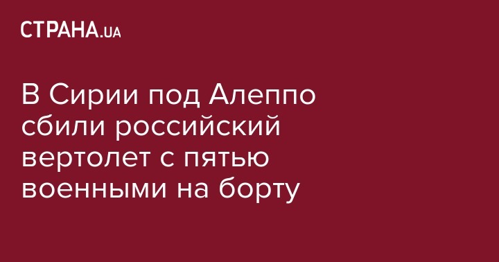 В Сирии в провинции Идлиб в 60 км от крупнейшего города страны Алеппо сбили российский вертолет Ми-8 с тремя членами экипажа и двумя офицерами. Об этом передает российское агентство "Интерфакс".