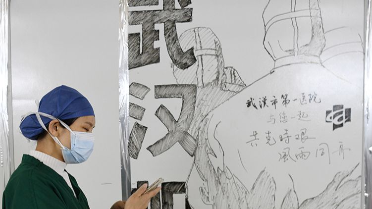 В больницах Китая на тему вируса уже рисуют граффити, фото: news.cn