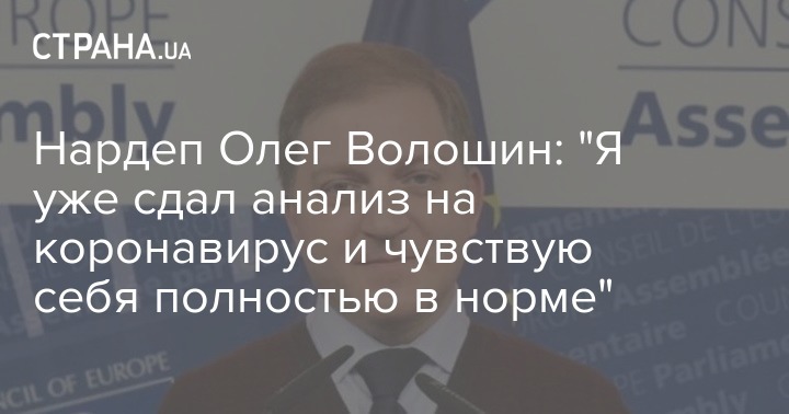 Нардеп Олег Волошин: "Я уже сдал анализ на коронавирус и чувствую себя полностью в норме"